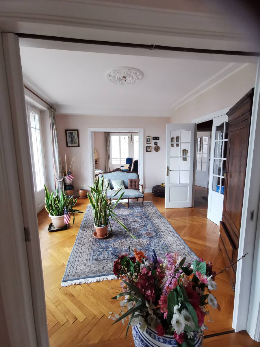 À proximité de TOUT, magnifique et vaste appartement au charme incomparable, il est fait de moulures et recouvert d'un parquet chevrons, d'une surface proche des 220 m². Disposant d'un triple séjour salon, de 4 voire 5 chambres et de 3 salles de bains ou douche, sa situation idéale et son confort (ascenseur, garage) vous séduiront par la rareté qu'il représente.
