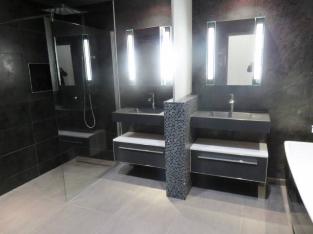 Entrée. cuisine aménagée ouverte sur coin repas, séjour, trois chambres dont une avec salle de douche et dressing, bureau. salle de bains et douche. Dressing. Jardin. Terrasse. Grand garage. Faire offre