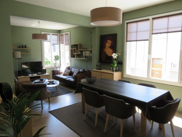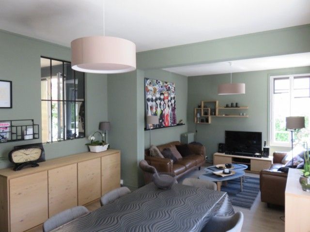 Séjour salon, cuisine aménagée, trois chambres, bureau, deux salles de bains. Garage deux voitures.