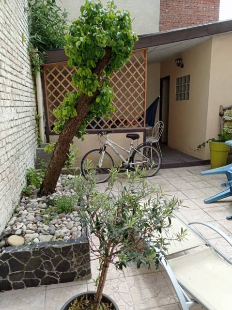 Jolie maison ancienne en excellent état avec décoration contemporaine. Entrée, cuisine aménagée ouverte sur séjour donnant sur grande terrasse ensoleillée. Au premier étage une grande chambre, salle de bains, dressing. Au dessus : trois chambres. dépendance.
